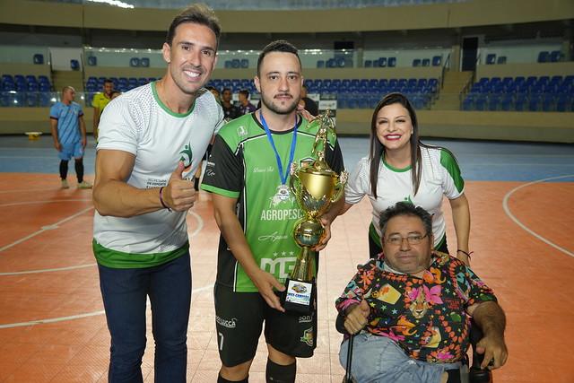 Secretário de Esportes, Leovil Júnior, fez a entrega da taça ao artilheiro da competição, Nelson Brandão