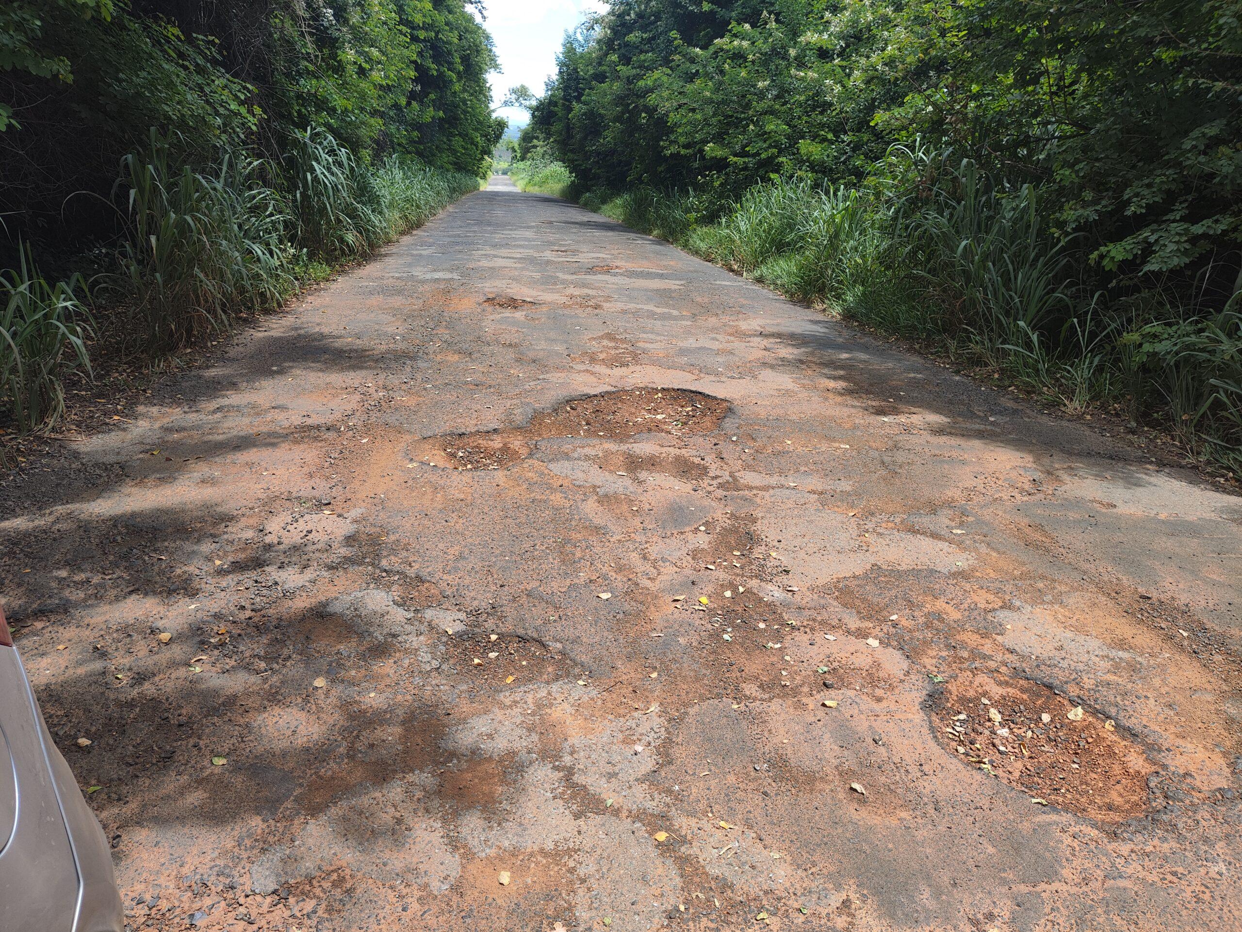 Sem conservação, o asfalto da estrada se deteriorou e hoje está em péssimas condições de tráfico