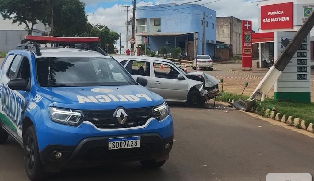 De acordo com a PM, o condutor perdeu o controle da direção, colidindo contra o meio-fio, luminárias de um posto de combustível e, em seguida, contra um poste da rede elétrica, causando danos materiais e risco à rede de iluminação pública.