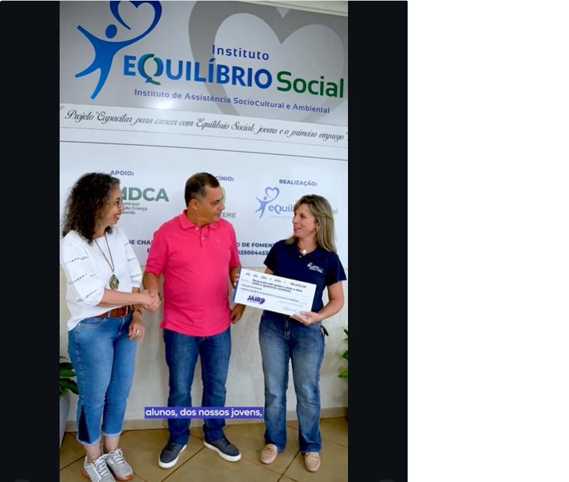 Durante a visita, o parlamentar destacou a importância do trabalho realizado pelo Instituto e ressaltou que o recurso contribuirá para a ampliação das ações já desenvolvidas com excelência. “Aqui na sede do Instituto Equilíbrio, juntamente com a nossa amiga Carol e a nossa amiga Deise, estamos entregando uma emenda impositiva destinada ao trabalho que eles já fazem com excelência, mas que pode ser ampliado. Esse instituto trabalha com o preparo e o encaminhamento do jovem para o primeiro emprego. Nós trazemos hoje o nosso reconhecimento, nossa gratidão e uma singela contribuição para que o trabalho de vocês continue. Nós precisamos muito desse trabalho, porque precisamos colocar o nosso jovem no mercado de trabalho”, afirmou Jair Humberto.