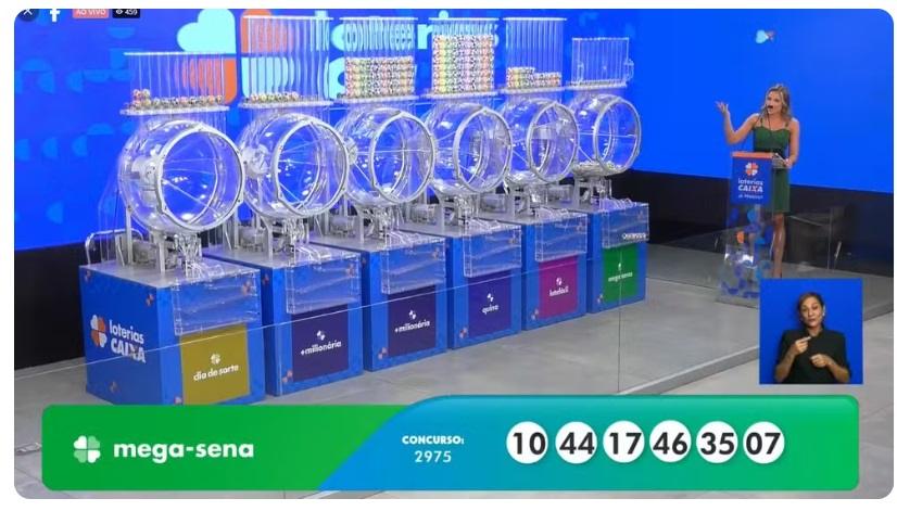 O sorteio do concurso 2975 da Mega-Sena foi realizado na noite deste sábado (21). — Foto: Reprodução/Caixa