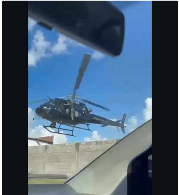 Helicóptero se posicionou em cima do muro para que o policial saltasse e prendesse o bandido