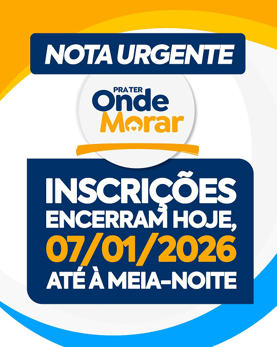 A Agência Goiana de Habitação (AGEHAB) informou, por meio de comunicado oficial, que, em virtude das diretrizes legais aplicáveis ao ano eleitoral, as inscrições para o programa Pra Ter Onde Morar deverão ser encerradas nesta terça-feira, 07 de janeiro de 2026, até às 23h59.