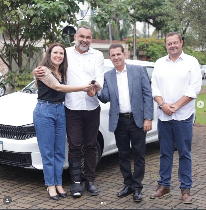 Haroldinho e Fabrinna recebem das mãos do Senador Vanderlan Cardoso a chave do novo veículo destinado à Três Ranchos