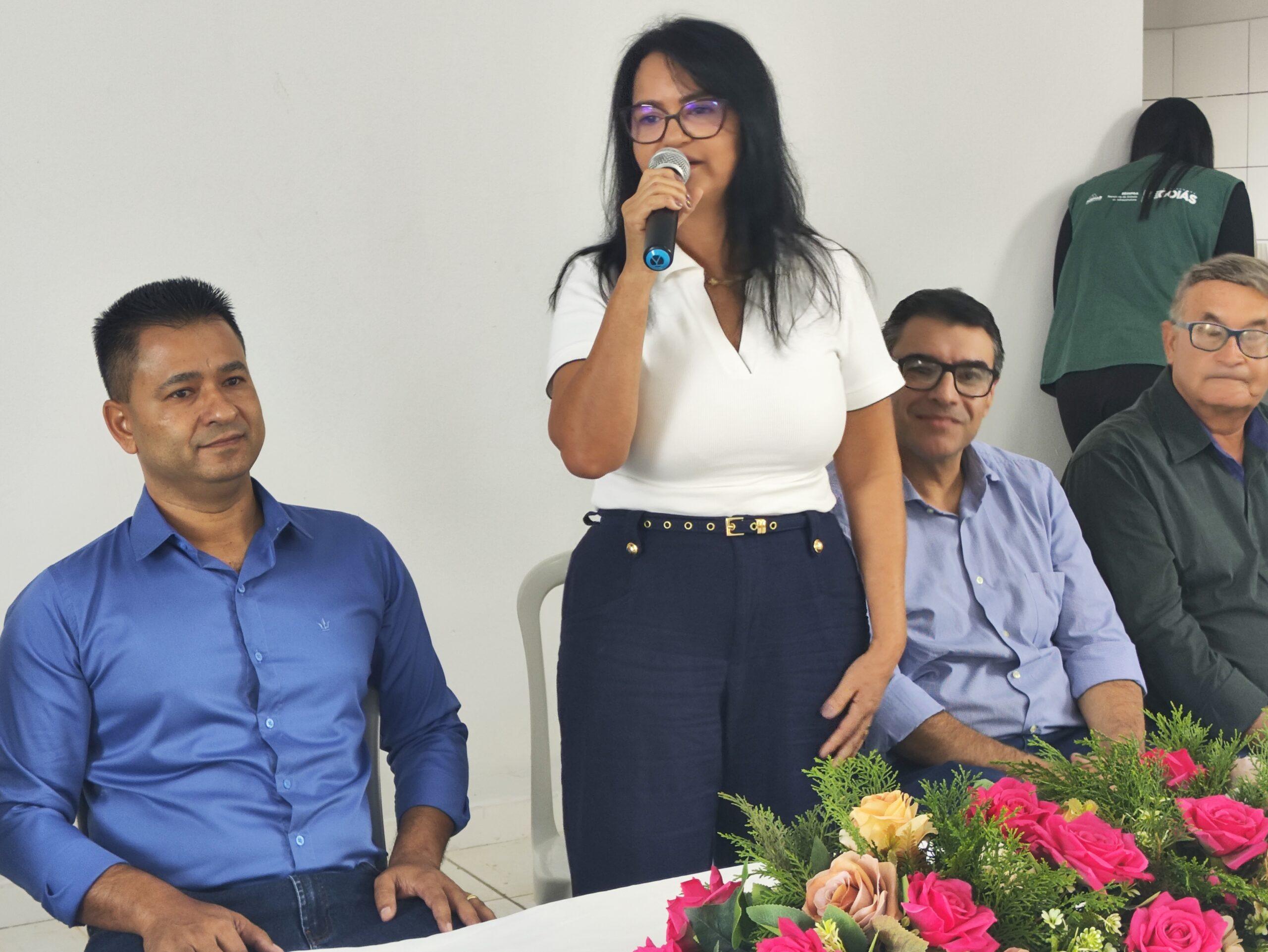 Prefeita Vanusa Bento discursando na solenidade