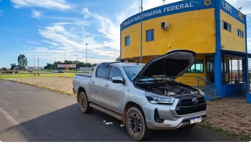 Uma caminhonete Toyota Hilux com indícios de adulteração foi apreendida pela Polícia Rodoviária Federal (PRF) na BR-050, em Araguari, na tarde de segunda-feira (30). O motorista, um homem de 38 anos, afirmou que comprou o automóvel por meio de um anúncio na internet pelo valor de R$ 223 milacreditando na procedência regular de um veículo de luxo.