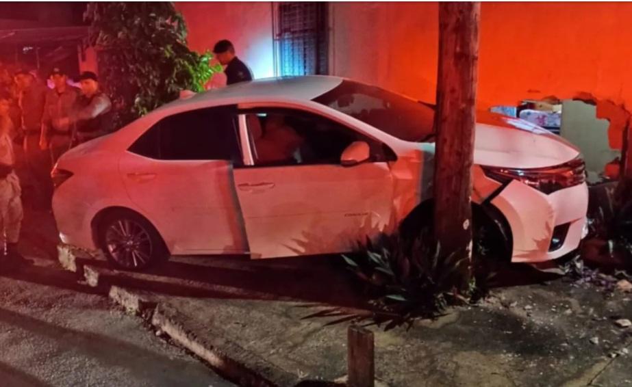 A perseguição terminou na Rua Jonas Duarte, onde o motorista perdeu o controle da direção e bateu violentamente contra a parede de um imóvel.