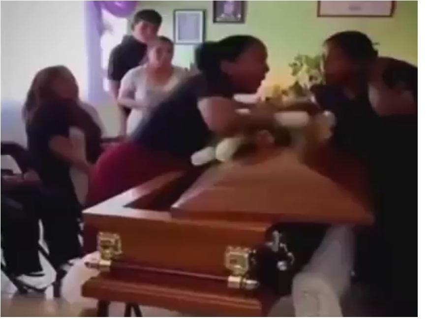Imagens mostram o momento em que a tampa do caixão quase se solta