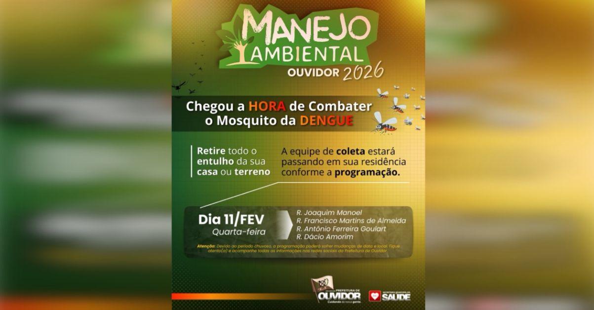 A Prefeitura de Ouvidor, por meio do setor de Manejo Ambiental, está intensificando as ações de combate ao mosquito Aedes aegypti, transmissor da dengue, zika e chikungunya. A iniciativa inclui coleta programada de entulho em diversos pontos do município.