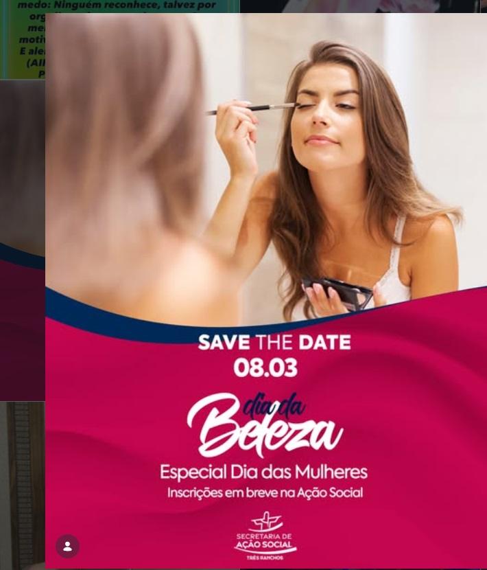 A primeira-dama de Três Ranchos, Fabrina Rodrigues, está convidando todas as mulheres do município para participarem de uma programação especial em comemoração ao Dia Internacional da Mulher, que será celebrado no próximo dia 8.
