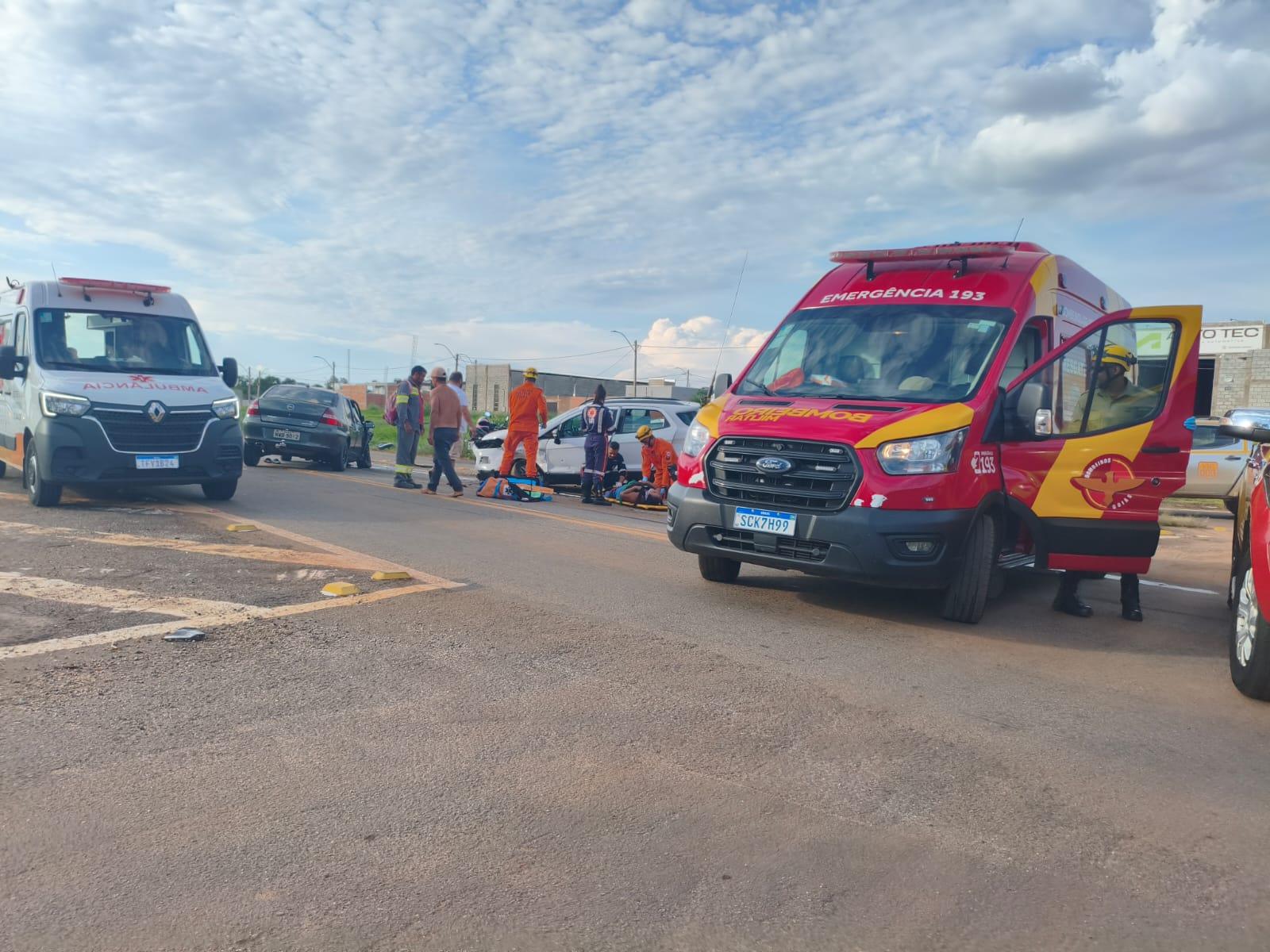 Acidente entre dois carros deixa três vítimas em Catalão na tarde de segunda-feira, na GO-330, entrada do Bairro Portal do Lago