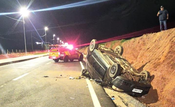 Para o atendimento, foram empregadas as viaturas UR-253 (resgate) e ASA-270 (auto salvamento). Ao chegarem ao local, os bombeiros encontraram o automóvel tombado e as duas vítimas — ambos homens — já fora do veículo e conscientes.