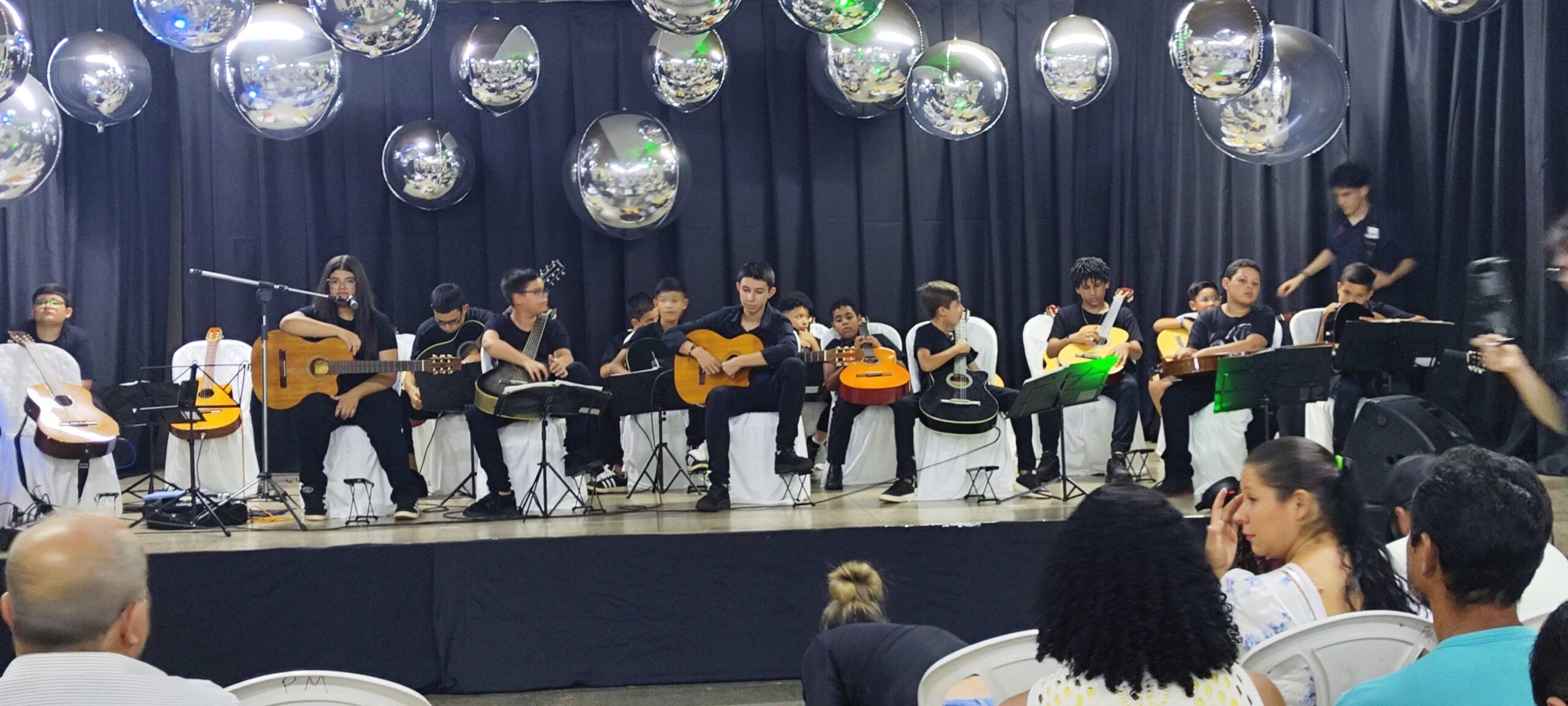 Orquestra de cordas formada por alunos do projeto foi uma das atrações mais aplaudidas na noite