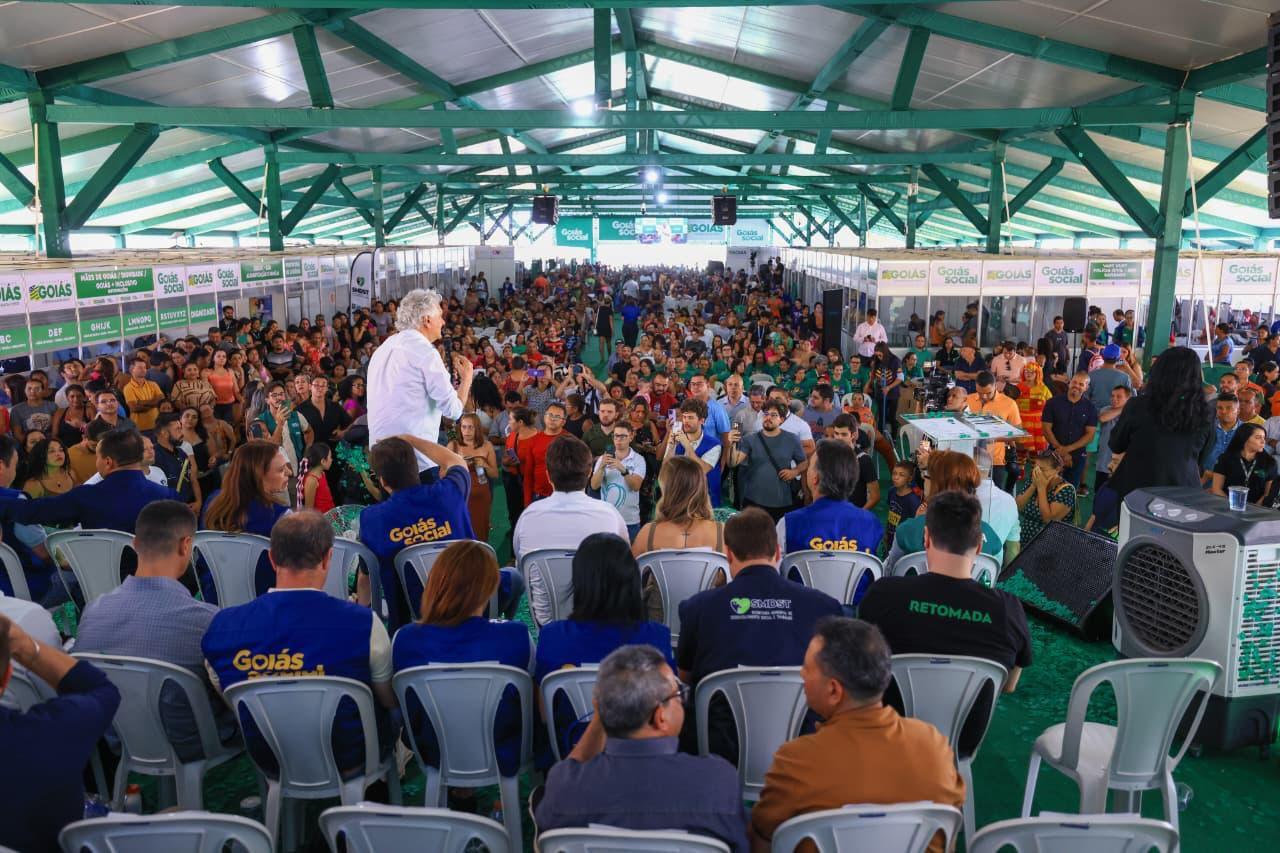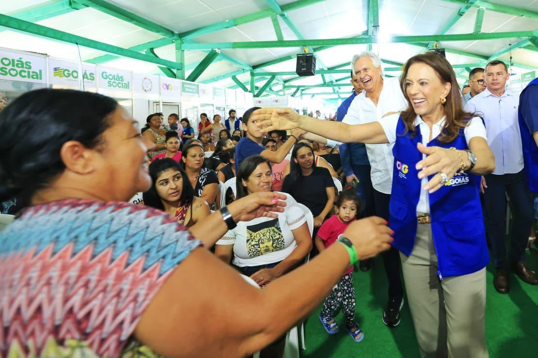 Governador Ronaldo Caiado, ao lado da coordenadora do Goiás Social, primeira-dama Gracinha Caiado, durante abertura do Goiás Social em Luziânia