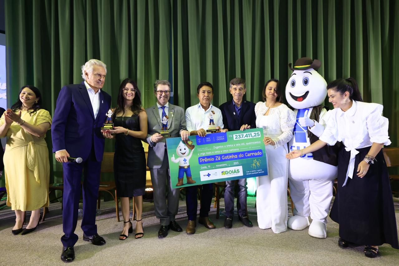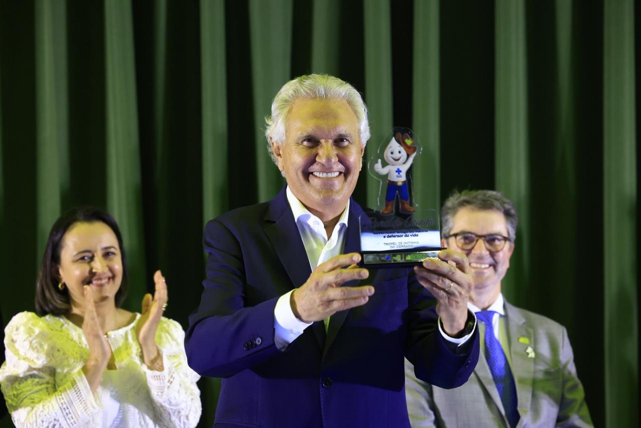 Governador Ronaldo Caiado entrega troféu e R$ 2,2 milhões durante prêmio Zé Gotinha a municípios campeões em imunização no Estado