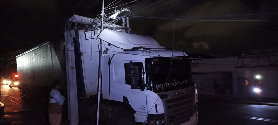 Caminhão de grande porte colide com poste ao lado do Hospital Materno Infantil em Catalão