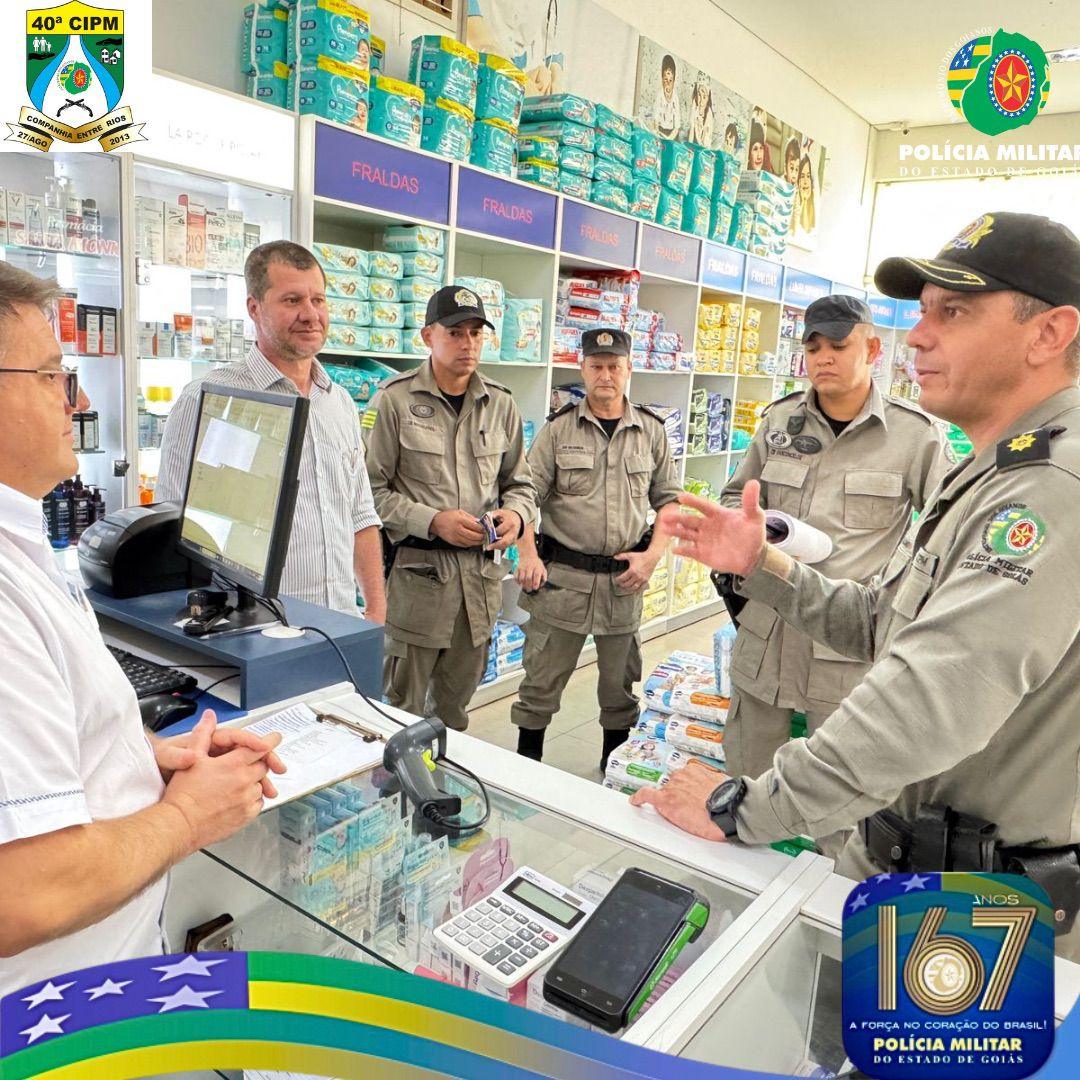 A iniciativa contou com a presença do Major Roldão, Comandante da 40ª CIPM, do prefeito Douglas Sertório, além de equipes do 3º Pelotão, que realizaram visitas comunitárias a estabelecimentos comerciais do município.