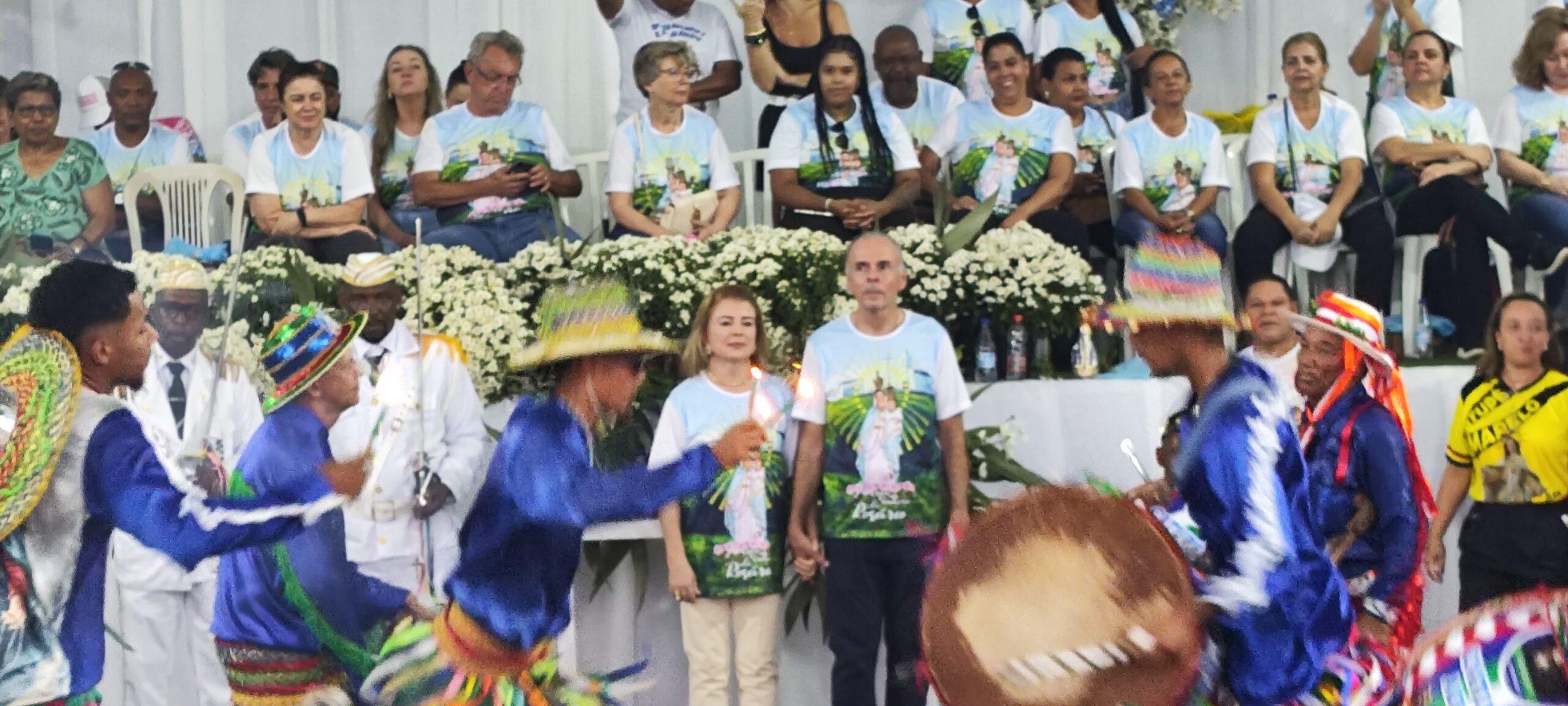 Na ocasião, o casal de festeiros deste ano, Luiz Sampaio e Samara, entregou a Coroa da Santa ao casal escolhido para conduzir a festa de 2026: o médico oftalmologista Dr. Nicolau Abrahão e sua esposa Julieta.