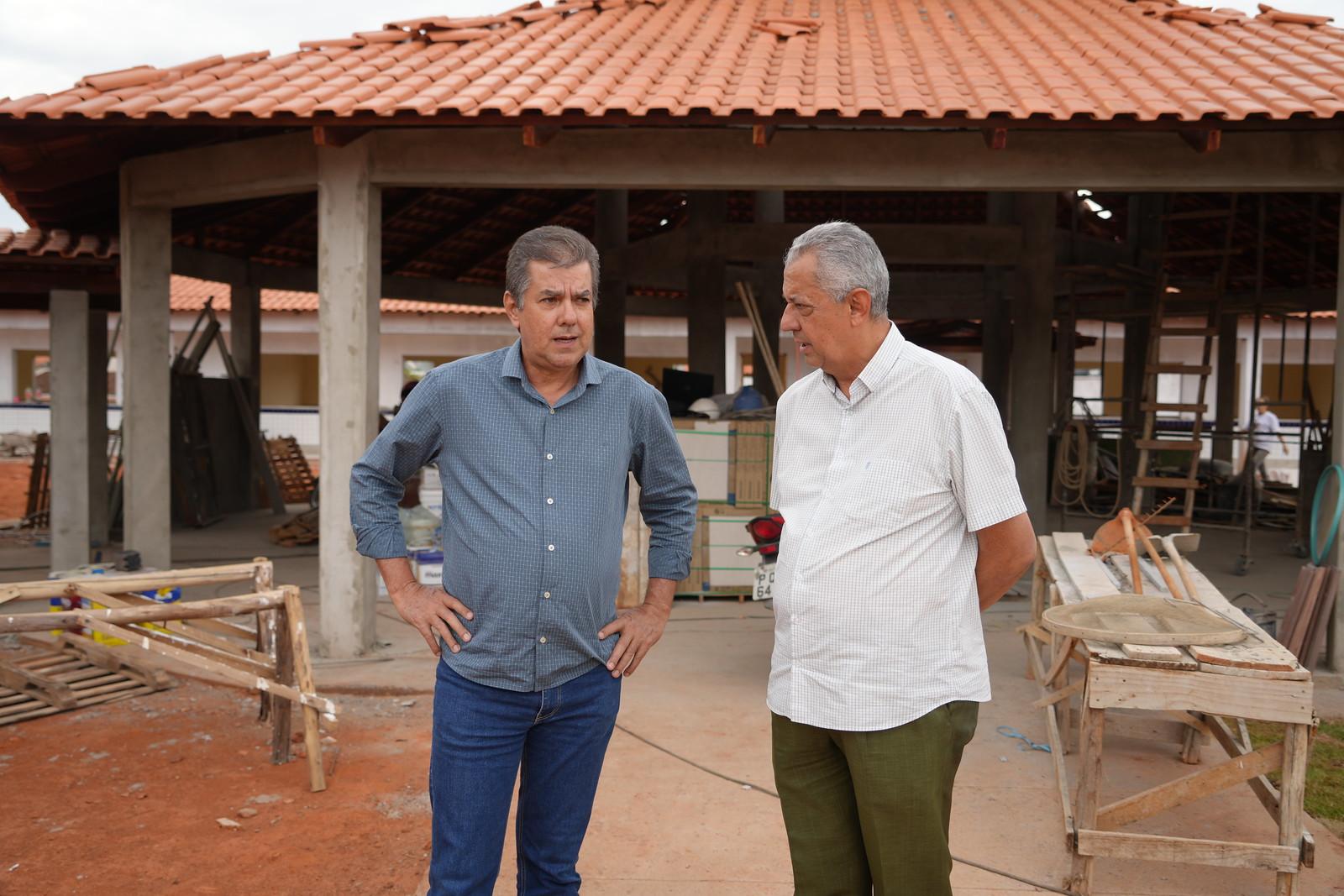 Secretário de Educação, Adilson Ciríaco e o prefeito Velomar em visita à obra da escola, ainda em construção, no mês de outubro passado