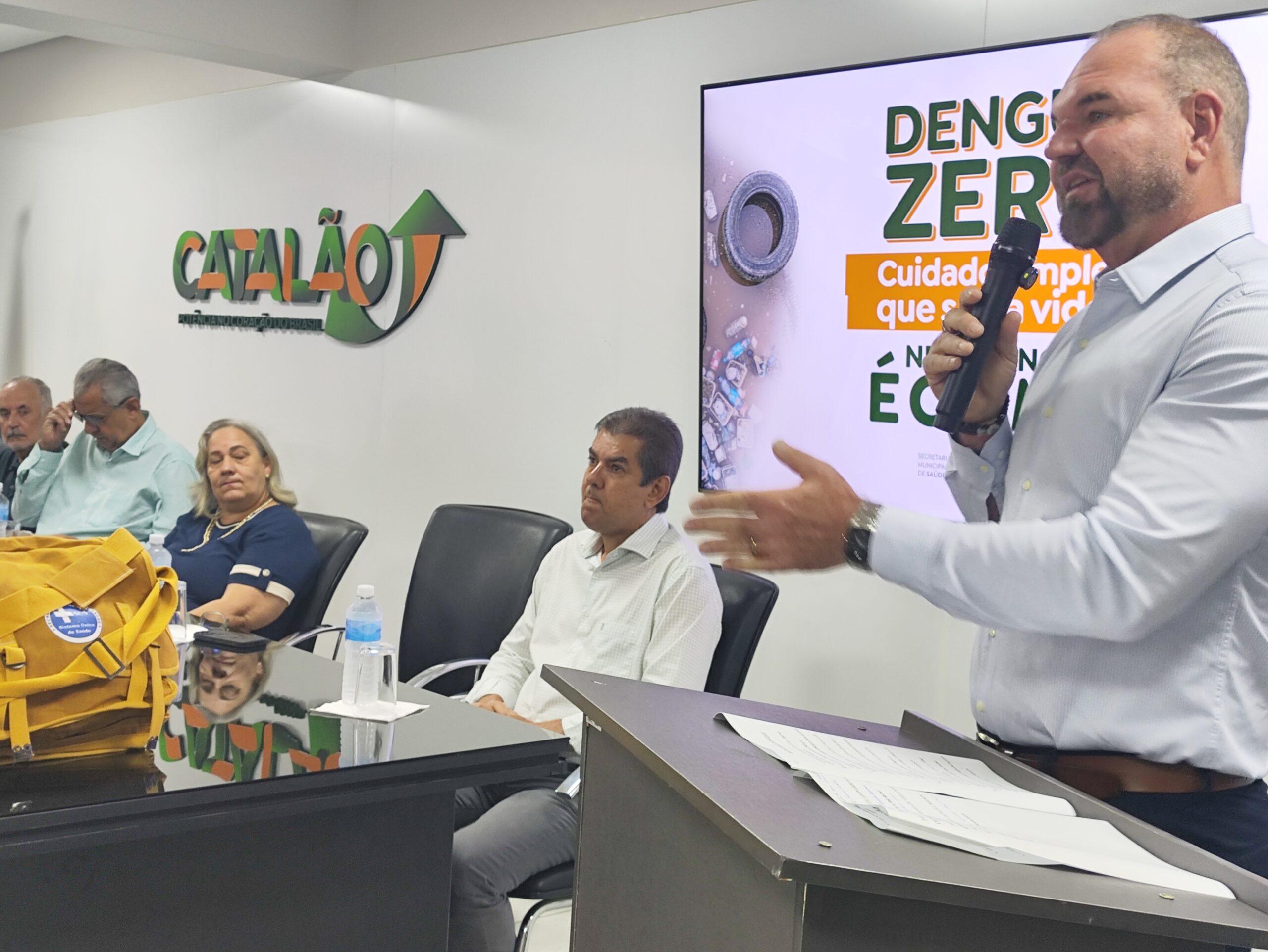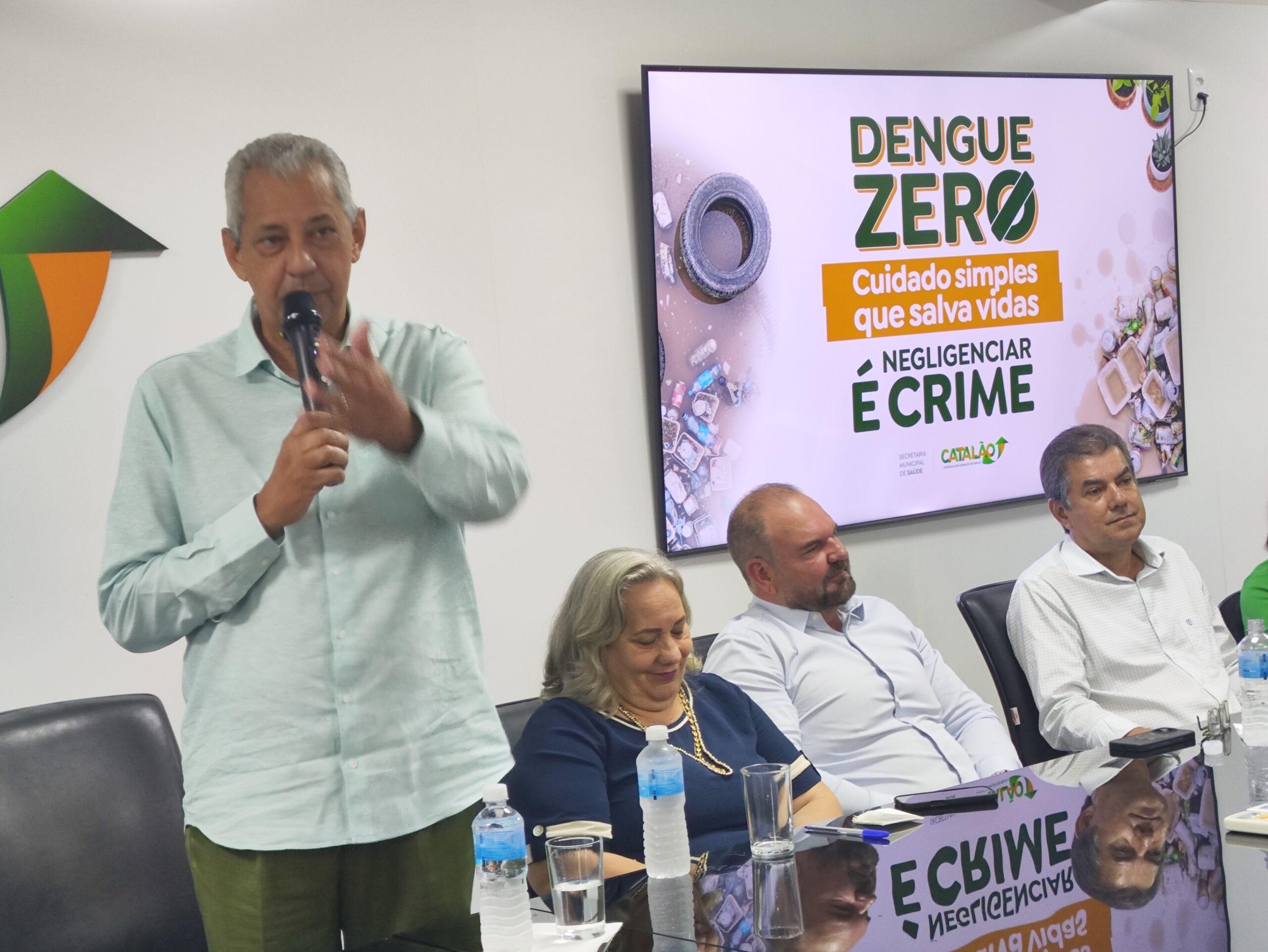 A Prefeitura de Catalão lançou oficialmente, nesta sexta-feira, 23/01, a campanha “Dengue Zero”, em evento realizado no auditório do Paço Municipal, com a presença do prefeito Velomar Rios, do secretário municipal de Saúde Leonardo Santa Cecília, do diretor de Endemias Geovani Franco, além de representantes da imprensa local.