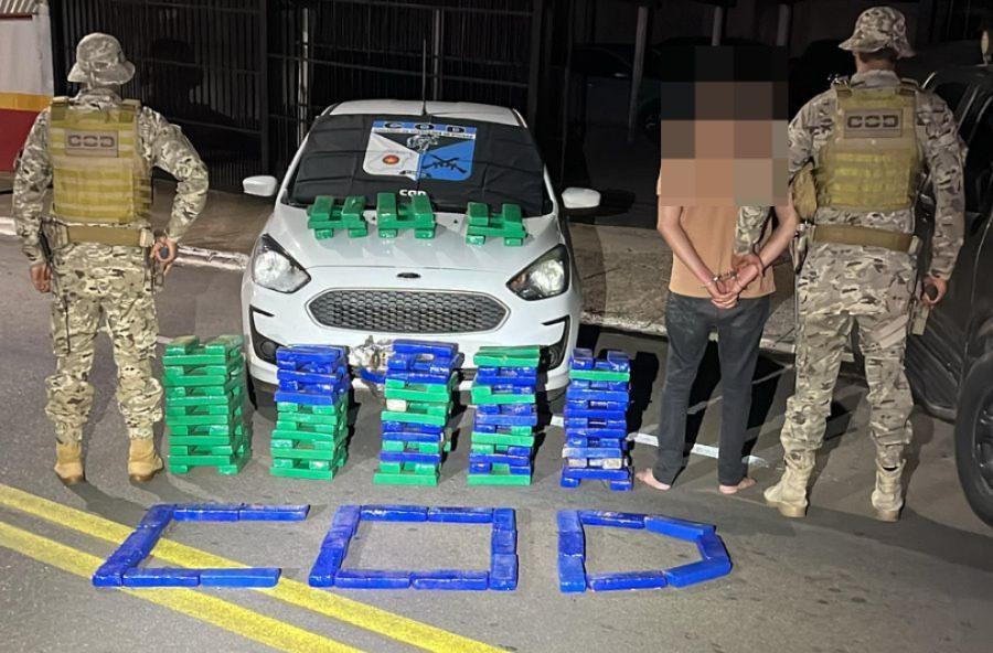 Segundo informações do COD, a equipe realizava abordagens de rotina quando um veículo chamou a atenção dos policiais. Diante da suspeita, foi dada ordem de parada e iniciada a vistoria. No porta-malas, os militares encontraram diversos volumes de maconha, totalizando cerca de 200 kg.
