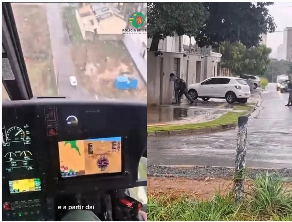 A Polícia Militar (PM) prendeu os dois suspeitos de roubar um motorista de aplicativo na madrugada de sábado (21), em Goiânia, após perseguição com apoio aéreo e troca de tiros.