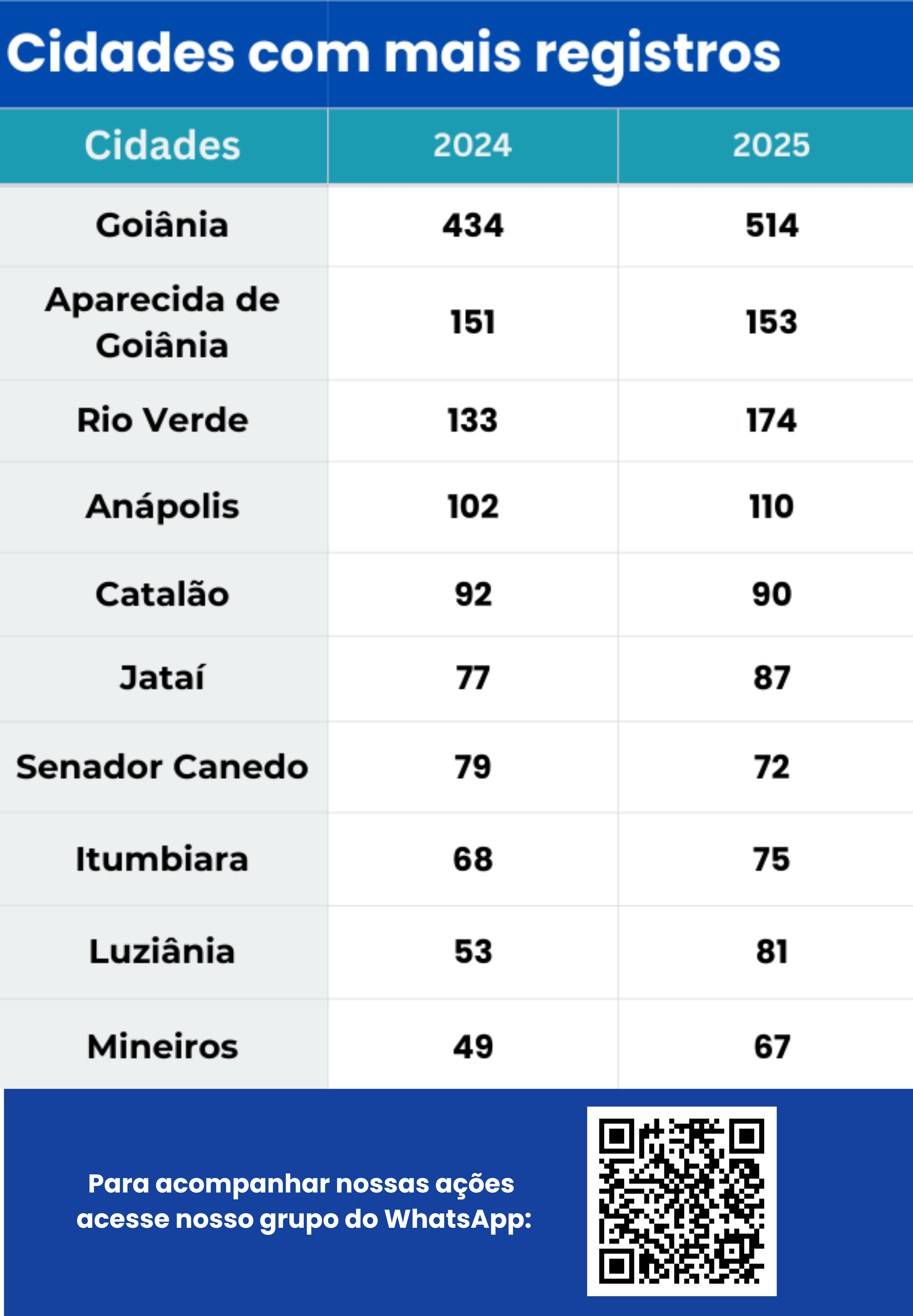Goiânia lidera os casos de acidentes contra postes com 514 abalroamentos, seguida de Rio Verde (174), Aparecida de Goiânia (153) e Anápolis (110). Essas localidades concentram um volume significativo do tráfego estadual, o que amplia a exposição ao risco de acidentes.