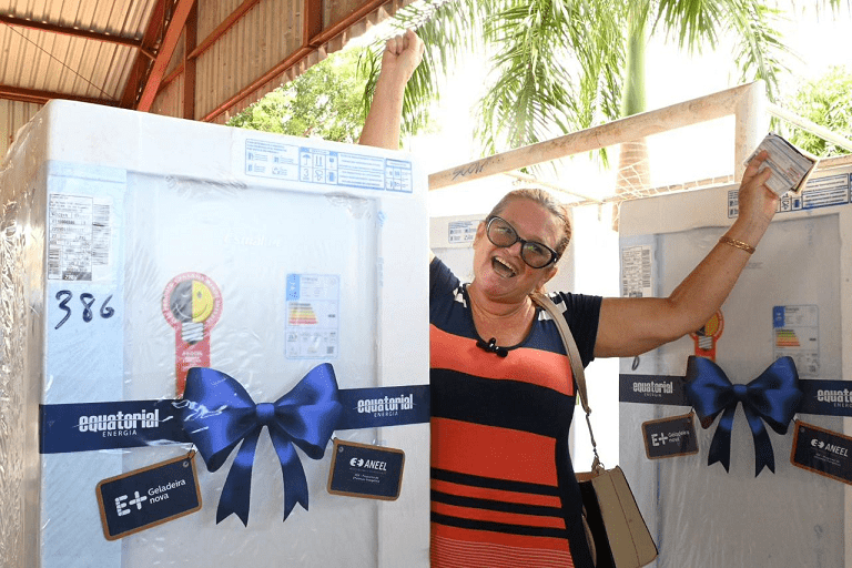 Os clientes podem se cadastrar para o sorteio do projeto E+ Geladeira Nova, da Equatorial Goiás, que realiza a troca de refrigeradores antigos por outros novos e mais econômicos.
