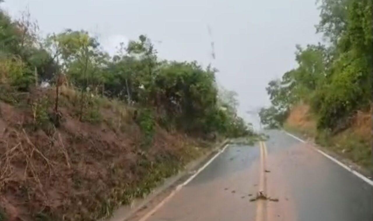 Entre Cumari e Anhanguera uma árvore tombou e interditou parcialmente a GO-305