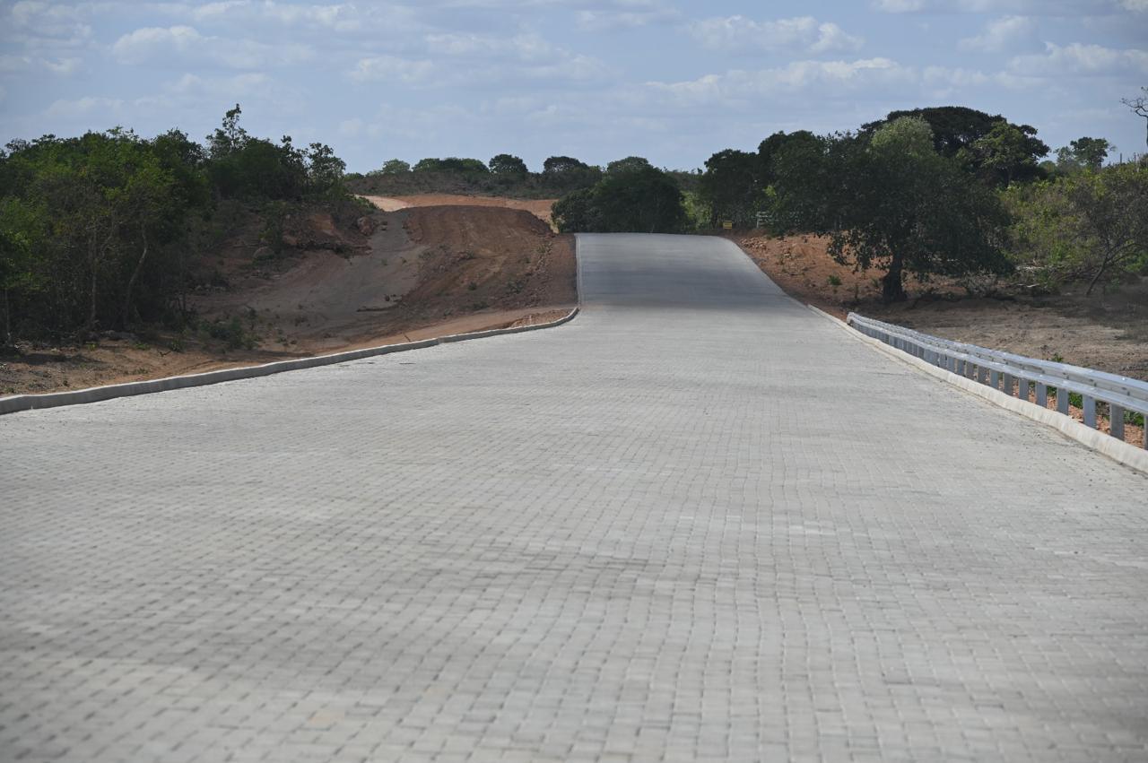 Oito quilômetros da pista executados em blocos de concreto, tipo paver, solução mais sustentável que o asfalto tradicional, dentro da área do Parque Estadual de Terra Ronca
