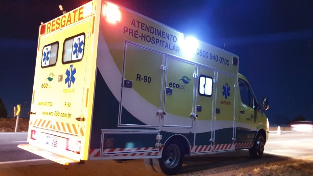 Ambulância da concessionária prestou socorro e conduziu os ocupantes da moto até o Pronto Socorro da Santa Casa de Catalão