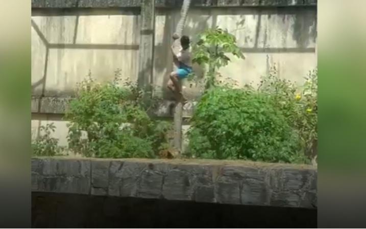 Homem escalou uma árvore e adentrou a jaula onde estava o animal