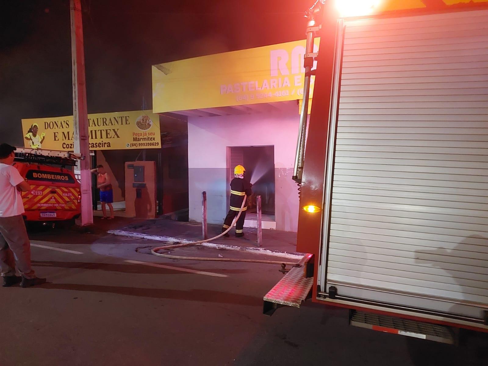 Incêndio atinge pastelaria na madrugada em Catalão e Corpo de Bombeiros evita maiores danos
