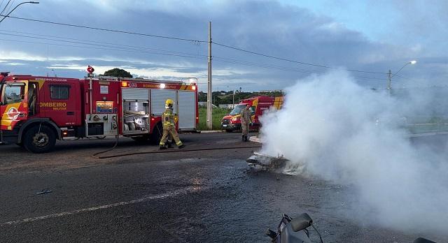 Incêndio destrói motocicleta após colisão com carro no bairro Alvino Albino