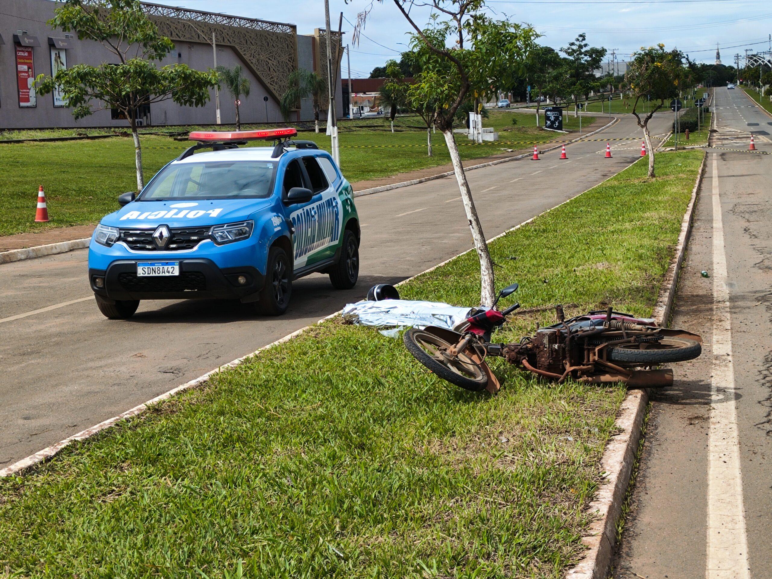 Uma mulher morreu na manhã deste domingo, 14/12, após se chocar com a motocicleta que conduzia, de 50 cc, contra uma pequena árvore no canteiro central da Avenida João Netto de Campos, quase em frente ao Catalão Shopping.