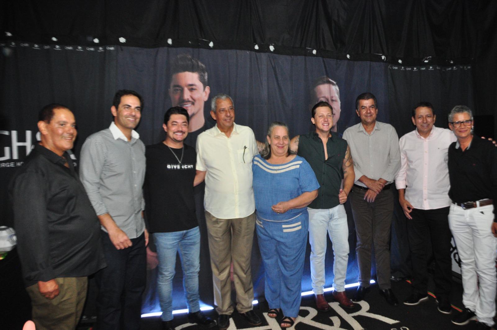 Prefeito Velomar e integrantes de sua equipe no camarim com George Henrique e Rodrigo, antes do show da dupla