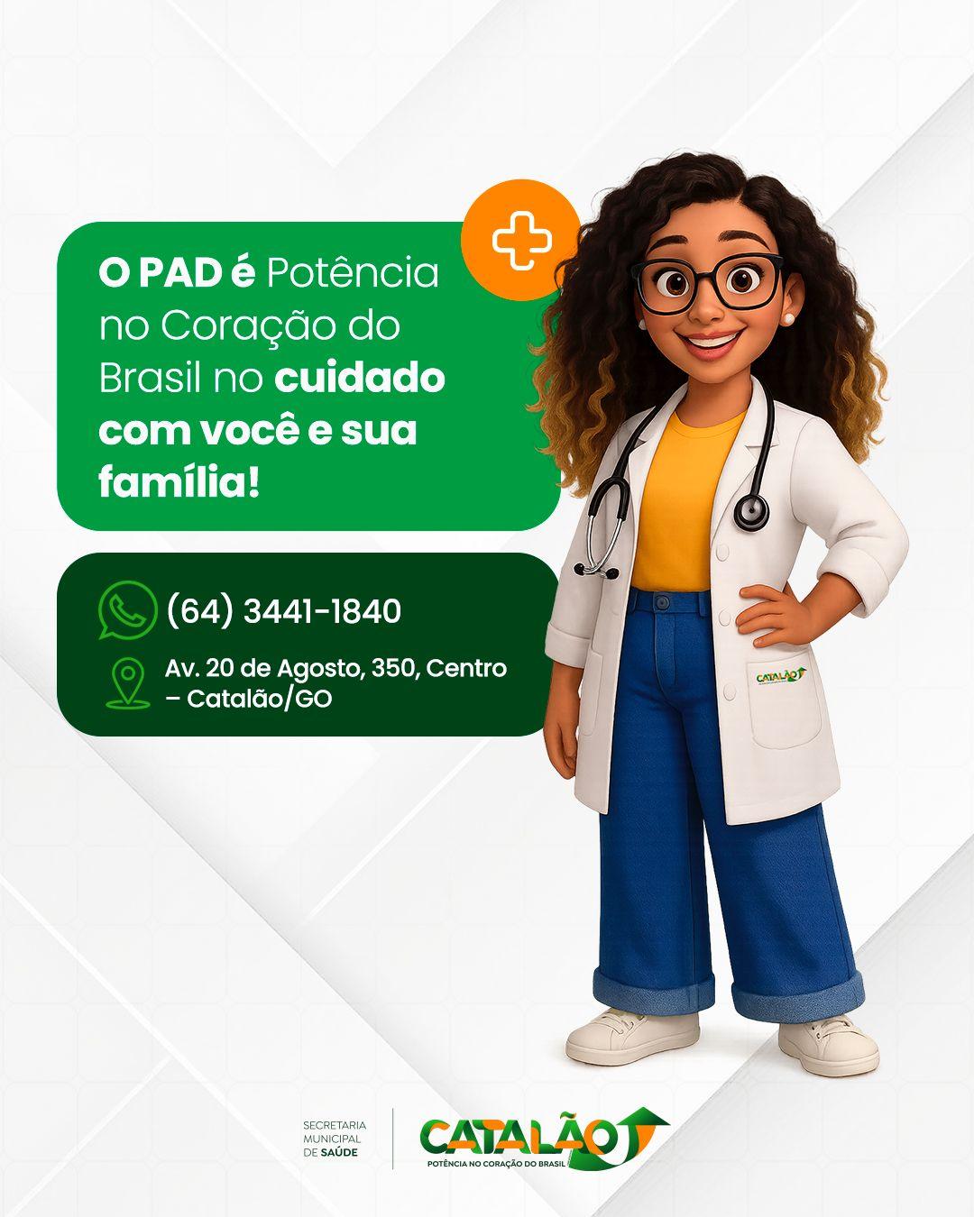 Atenção: É obrigatório possuir o Cartão do SUS emitido por Catalão. O PAD é um serviço programado e não substitui o Home Care nem realiza atendimentos de urgência ou emergência.