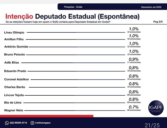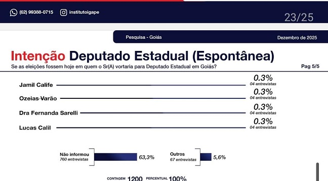 A mais recente Pesquisa de Opinião Pública do Estado de Goiás, encomendada pela Record News e realizada pelo IGAPE – Instituto Gazeta de Pesquisa, entre os dias 20 e 26 de dezembro de 2025, mostra quem realmente tem força política consolidada no estado.