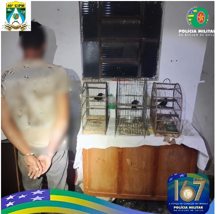 Durante o atendimento de uma ocorrência de violência doméstica no bairro Dom Vital, em Ipameri, equipes da 40ª CIPM localizaram aves silvestres da fauna nativa brasileira mantidas em cativeiro, em situação de maus-tratos.