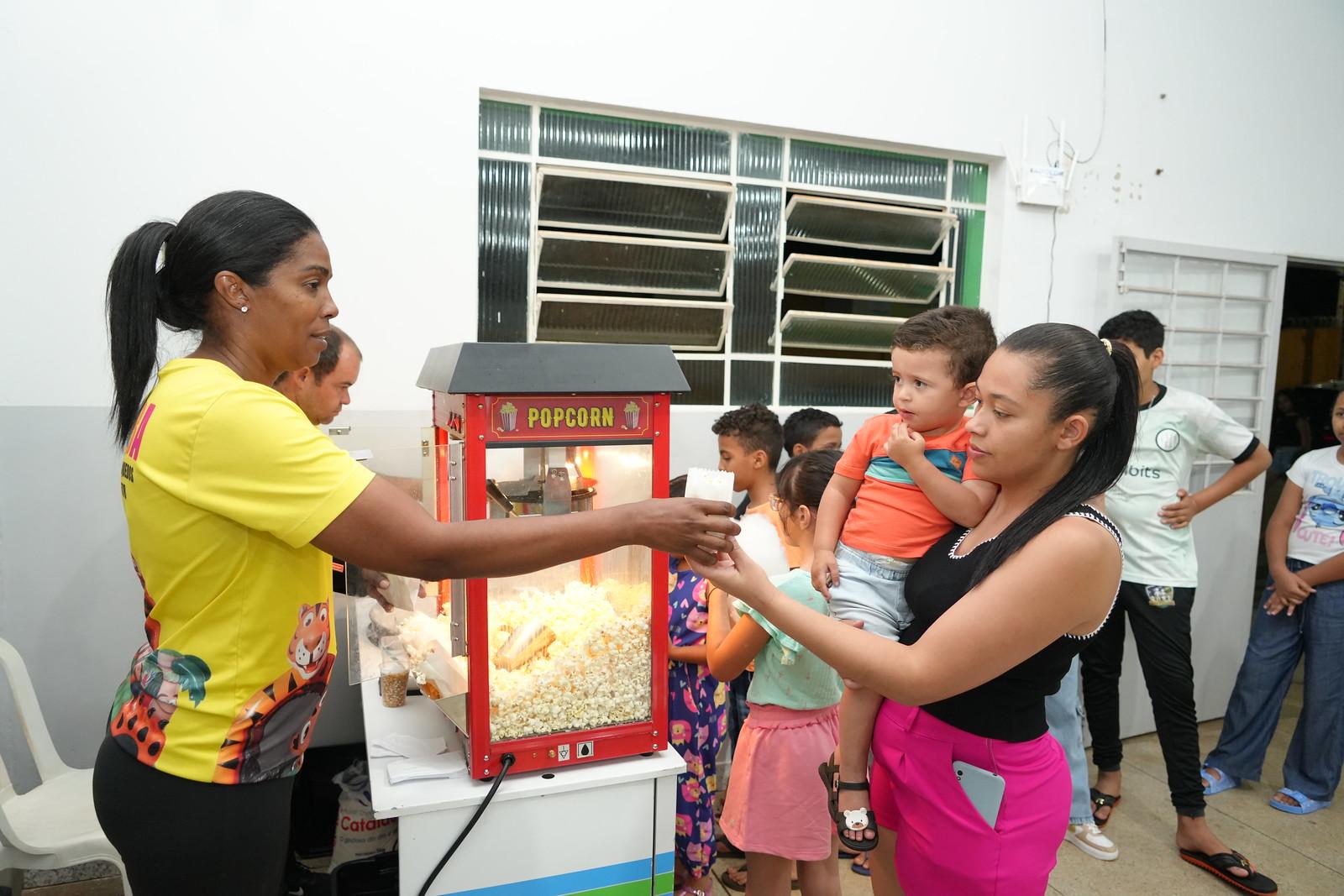 A iniciativa contou com estrutura completa: pipoca, algodão doce e muita expectativa para exibir um filme inédito em uma “telona” montada especialmente para a ocasião. De acordo com moradores, esta foi a primeira vez que se tem registro de uma sessão de cinema aberta à comunidade no distrito, que possui cerca de 5 mil habitantes.