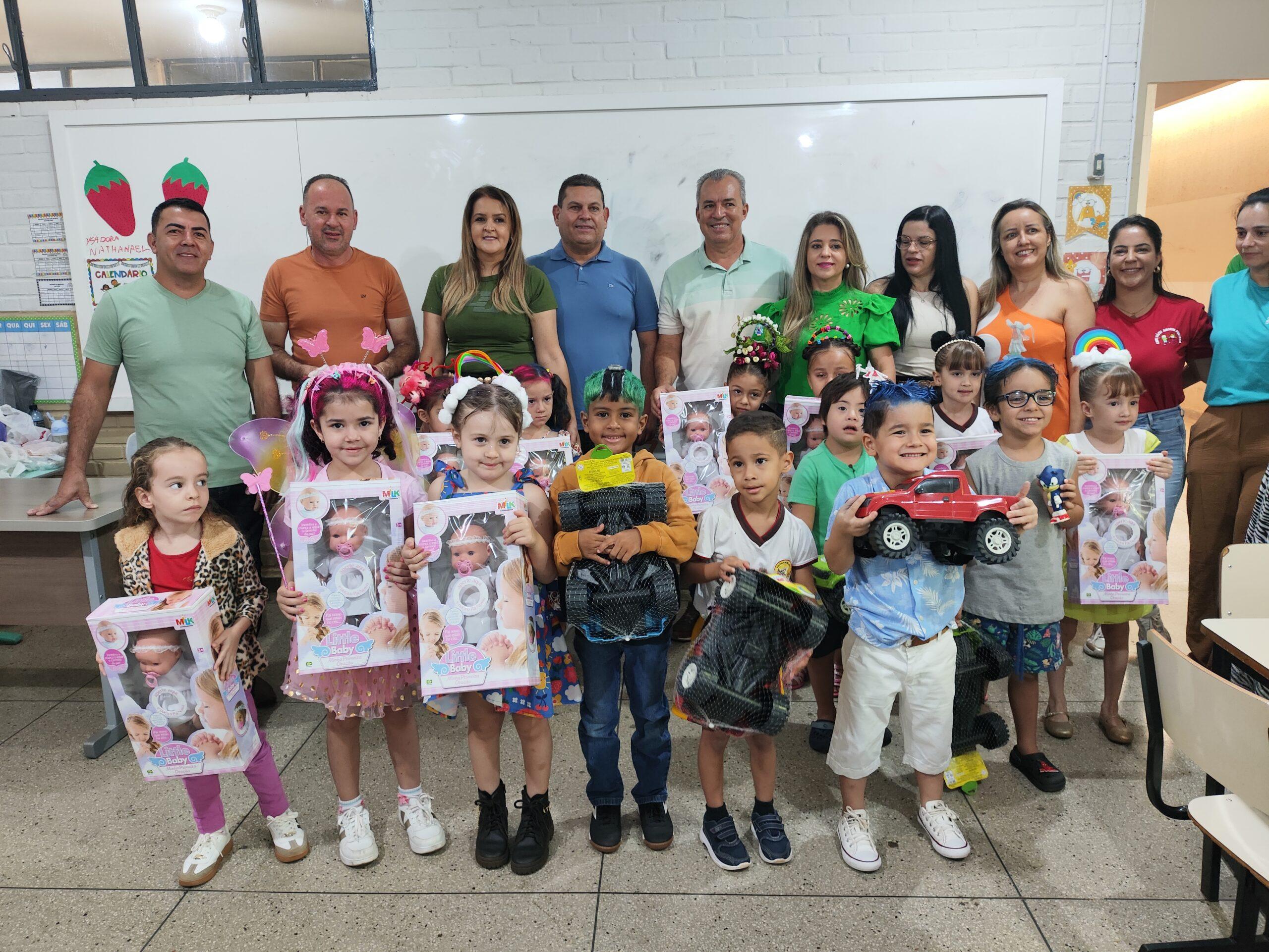 Como ocorre todos os anos desde o seu primeiro mandato, o prefeito Cebinha Nascimento e o vice-prefeito Nelci Cândido visitaram as escolas para participar pessoalmente da distribuição dos presentes. “Estamos mantendo a tradição de entregar brinquedos às crianças nessa data e, dessa forma, também estamos investindo na educação. Quero aproveitar para agradecer a todas as profissionais da Educação pelo carinho com que cuidam das nossas crianças”, destacou o prefeito.
