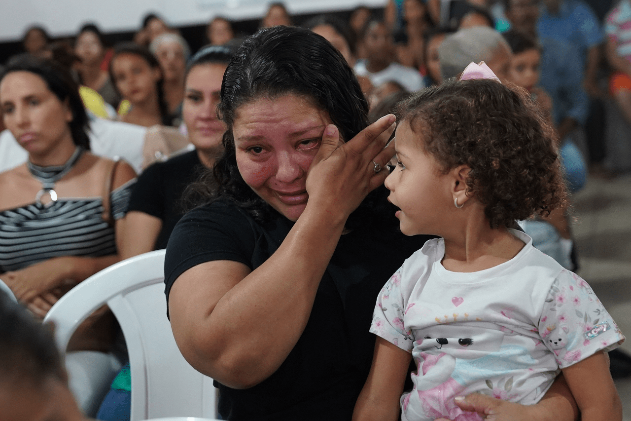 Beneficiária se emocionada ao receber a notícia que tinha sido contemplada com o imóvel