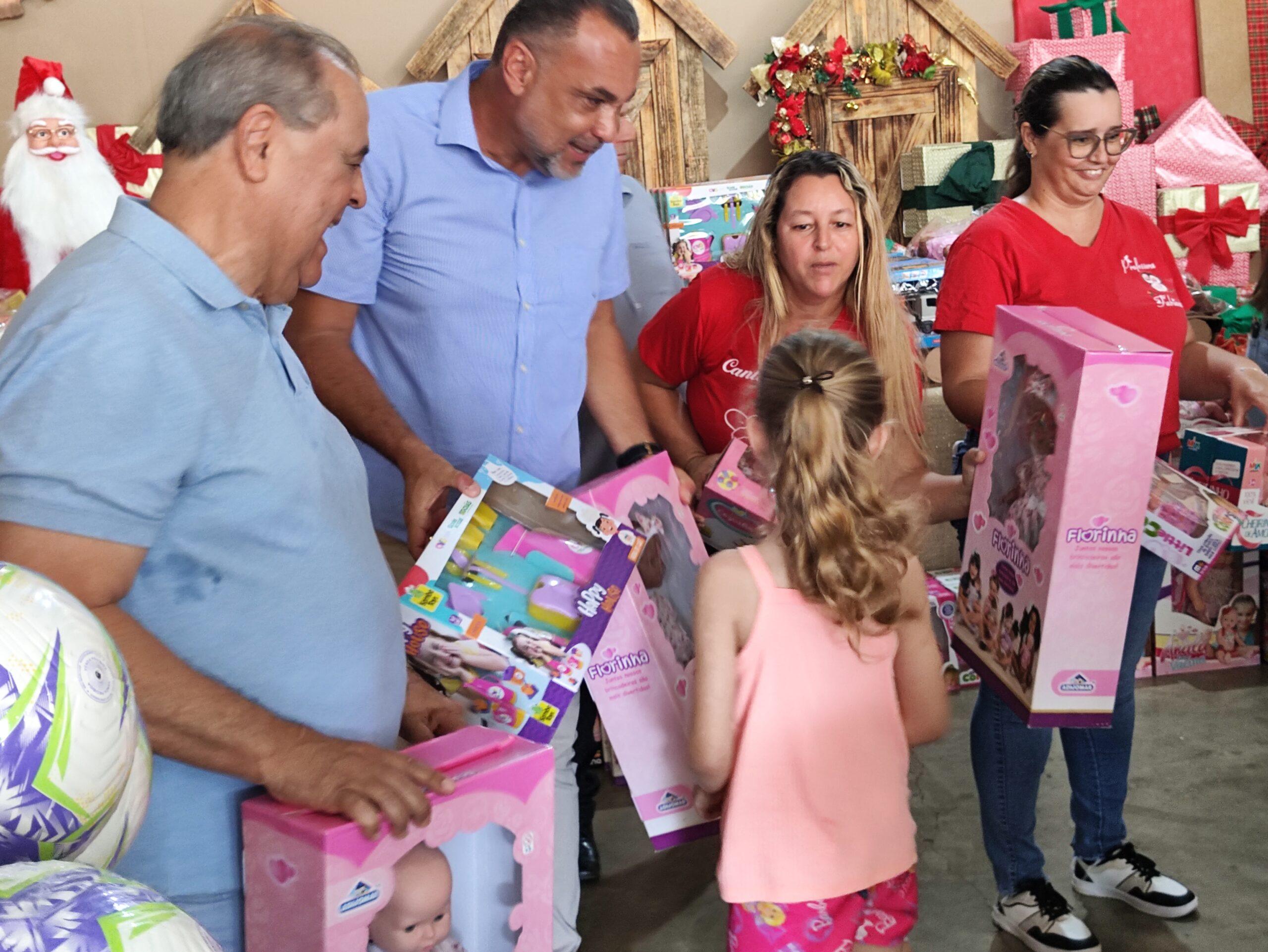 A Organização das Voluntárias de Goiás (OVG) doou cerca de 700 brinquedos, e a Prefeitura Municipal complementou a ação, elevando o total para quase mil unidades. Assim, todas as crianças presentes no evento saíram felizes, cada uma com seu brinquedo em mãos. Ninguém ficou sem receber. Vale destacar que os brinquedos distribuídos são de boa qualidade e têm boa durabilidade.