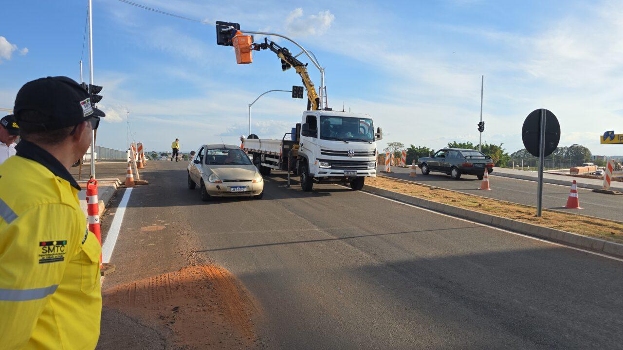 Na tarde desta quinta-feira (13), equipes da Superintendência Municipal de Trânsito de Catalão (SMTC), em parceria com a Ecovias Minas Goiás, iniciaram a instalação de semáforos no viaduto localizado no cruzamento da via paralela à BR-050, região que dá acesso ao bairro Castelo Branco e ao Centro pela avenida José Marcelino.