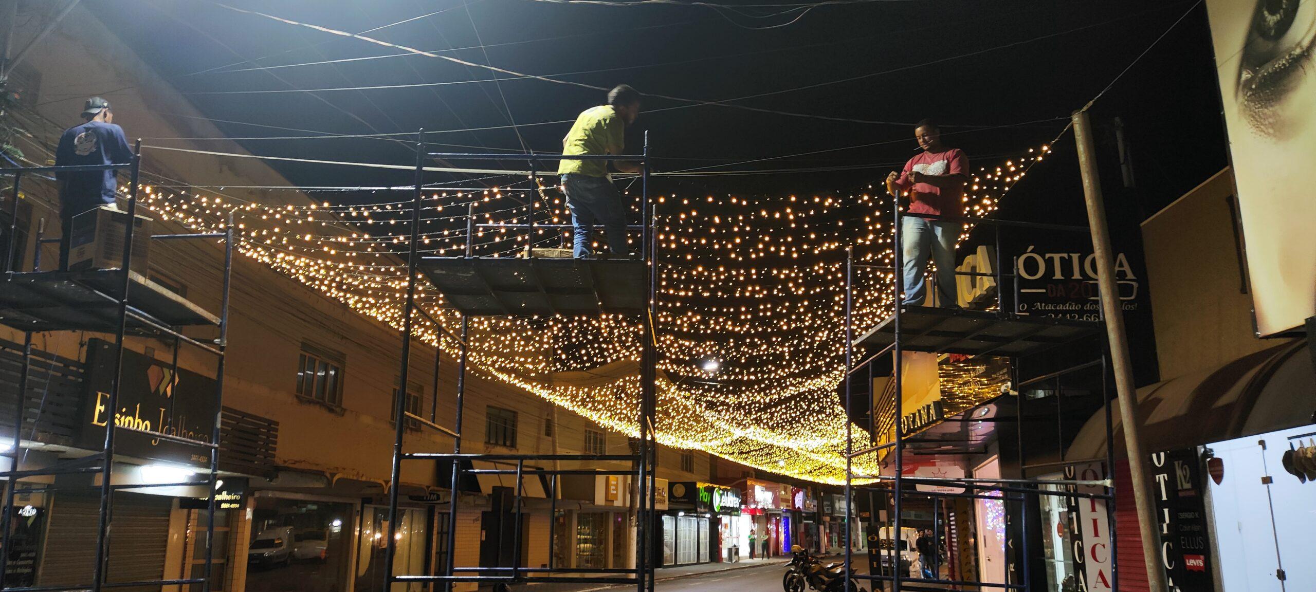 Empresa responsável pela criação do túnel de luzes em Catalão trabalha todas as noite para terminar a decoração até o próximo sábado, dia 06